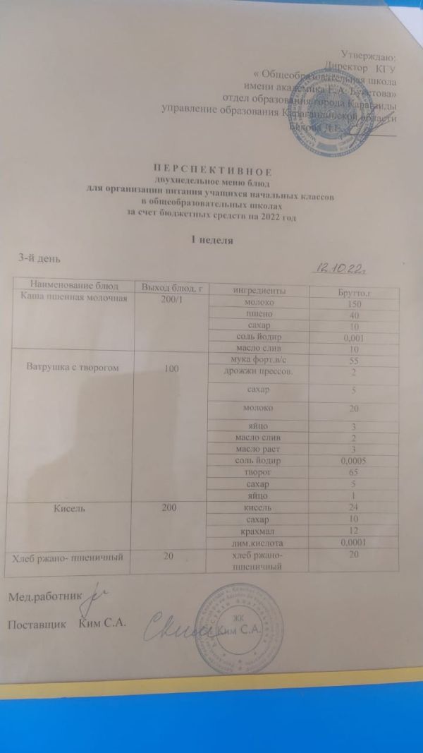 Питание школьников на 12.10.2022