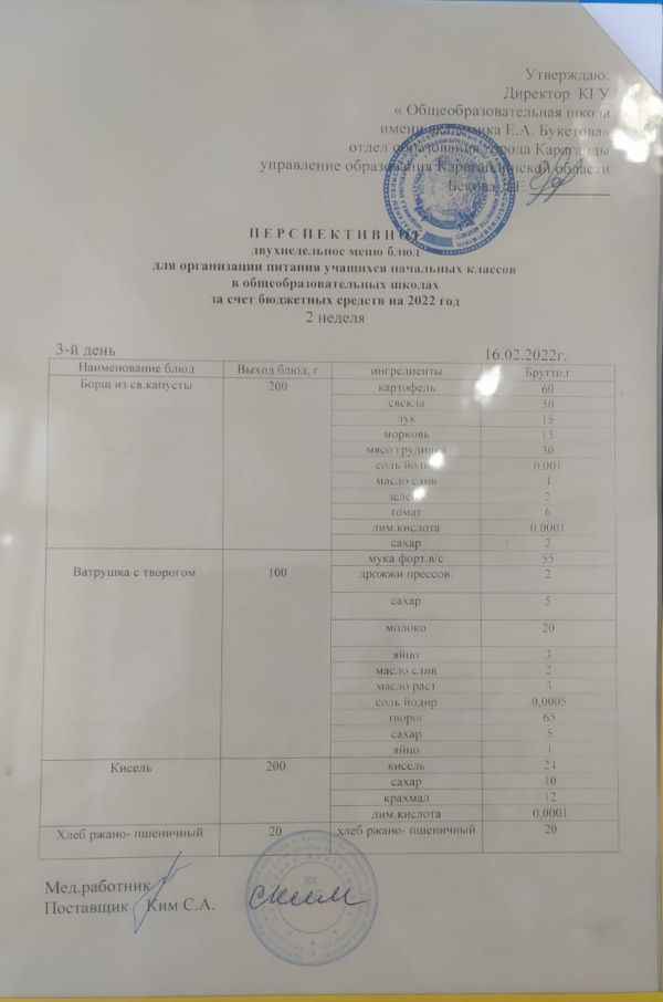 Питание школьников на 16.02.2022