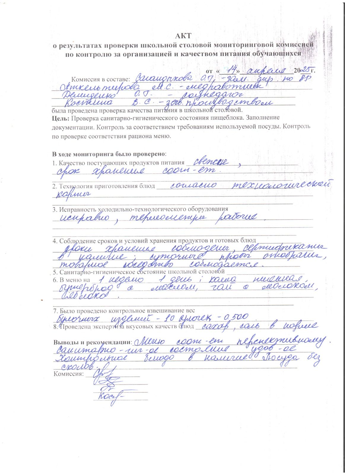 14 апреля 2025 года состоялась очередная проверка пищеблока членами бракеражный комиссии.