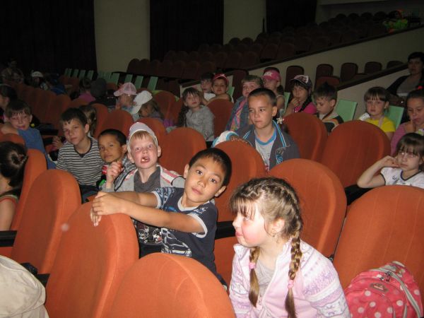 Посещение кинотеатра и творческая мастерская. 5 июня ребята отправились в кинотеатр "Сарыжайляу" на День кино. Детей развлекали клоуны, затем был продемострирован фильм "Реальная бе…