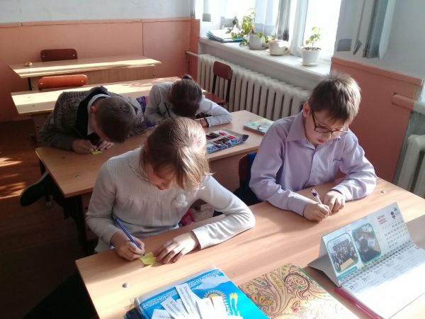 4а сыныбында әдеби оқу сабағы өтті. Тақырыбы: Д.Мамин-Сибиряк "Емеля-охотник". Оқушылар жұмыстарды талдап, топта жұмыс істеу қабілеттерін көрсетті.