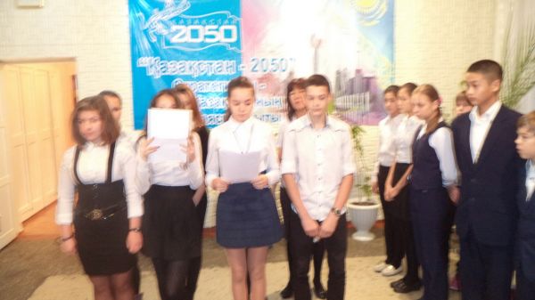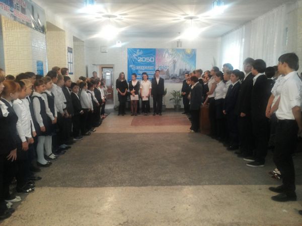 С 24 ноября в школе проходит неделя, посвященная Дню Первого Президента Республики Казахстан. Школа была празднично оформлена. Неделя открылась торжественной линейкой.