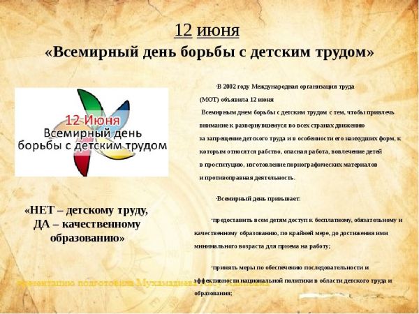 "12 дней борьбы против эксплуатации детского труда"