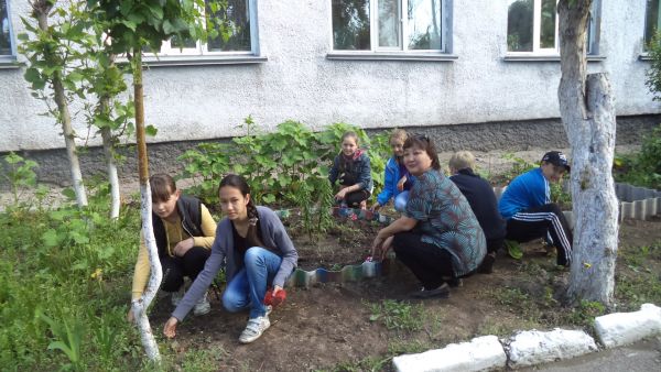 С 1 июня начали работы бригады по озеленению: на предшкольном дворе учащиеся разбили клумбы, высадили рассаду разнобразных цветов.