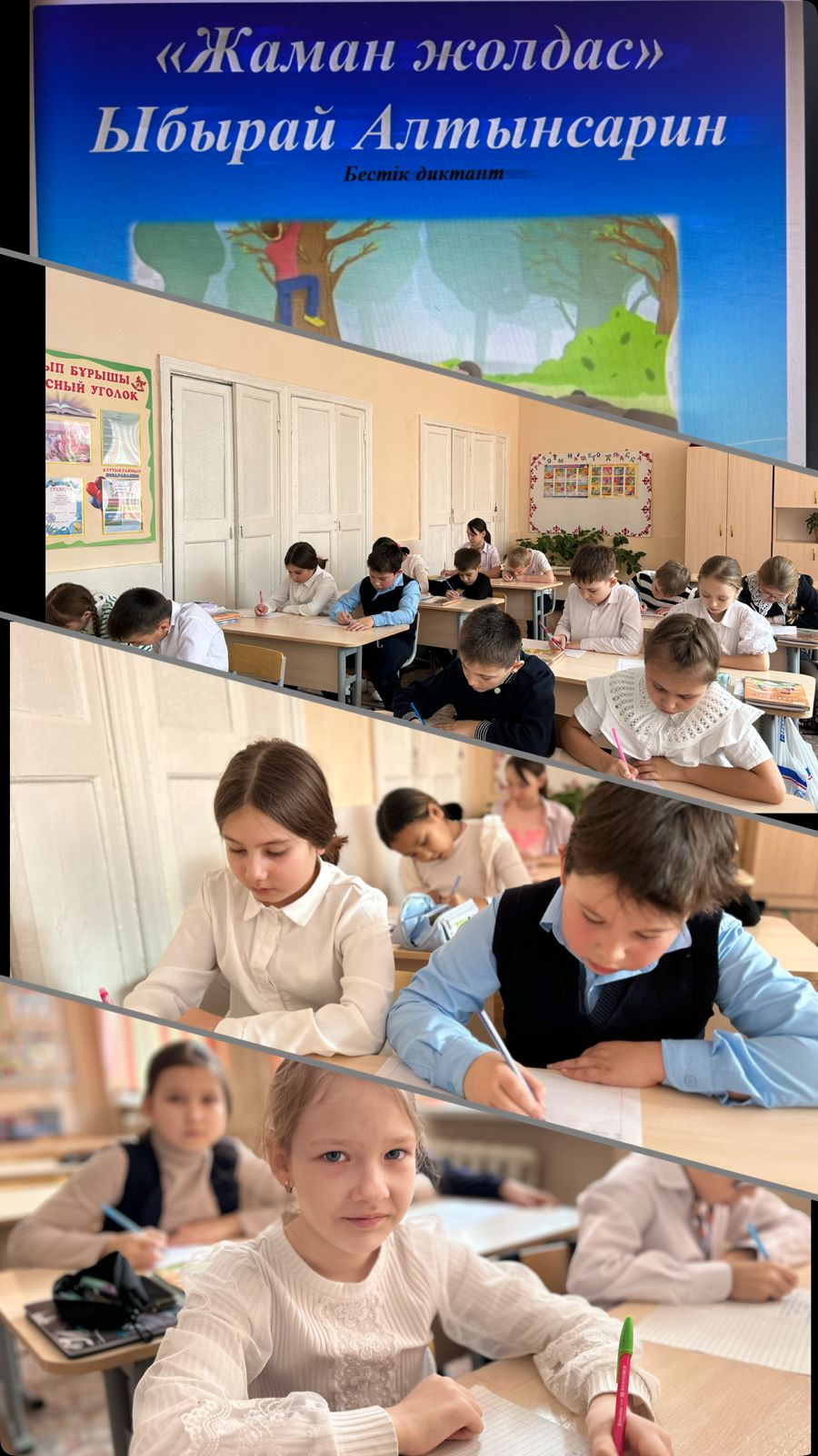 Оқу сауаттылығы аптасының жоспары аясында 4 “А” сынып оқушылары Ыбырай Алтынсаринның “Жаман жолдас” әңгімесі бойынша бестік диктант жазды.