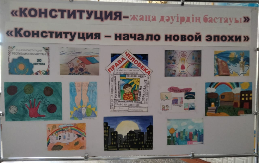 В ОСШ #78 подготовлен тематический стенд "Конституция - жаңа дәуірдің бастауы", "Конституция - начало новой эпохи". Поздравляем с праздником, с Днём Конституции!