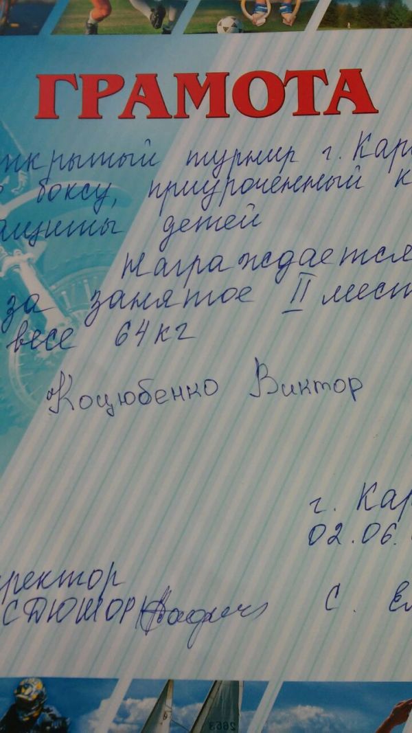 В открытом турнире г. Караганды по боксу Ученик 4 а класса Коцюбенко Виктор занял 2 место. Поздравляем!