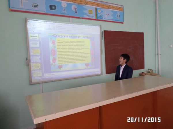 Тәуелсіздік күні мерекесі аясында қазақ тілі мен әдебиеті пәні мұғалімі Мадет А. «Қазақ хандығына 550 жыл» тақырыбында 9 «А» сынып оқушыларымен ашық сынып сағатын өткізді.