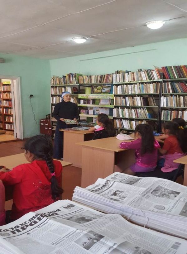 11.06.2015 ж. Балалар таңғы жаттығудан кейін таңғы астарын ішіп, «Жұмысшылар кентіндегі» жергілікті кітапханаға саяхатқа барды.Онда балалар түрлі әдебиет жанры…