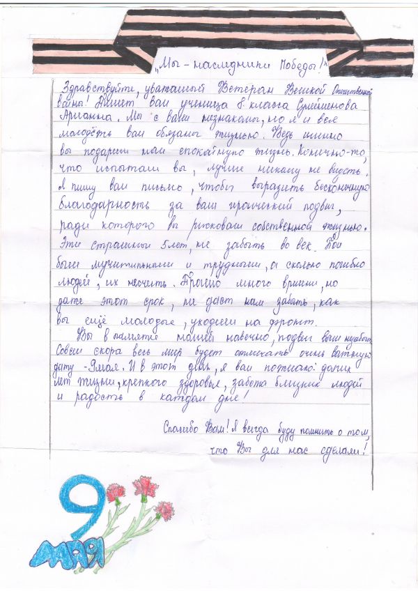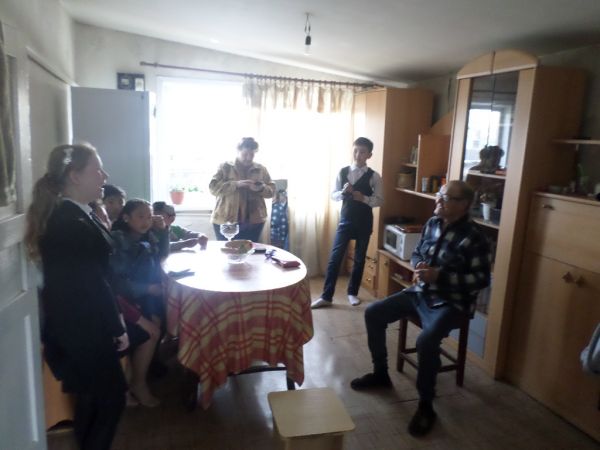 14.04.2017 жылы 8Б сынып оқушылары сынып жетекшілері Г.В. Карсакинаның және мектептің аға тәлімгері А.Н. Юсупбекованың жетекшілігімен Рабочая көшесі, 153 үйдің тұрғыны, соғыс ҰОС ардагері Александр…