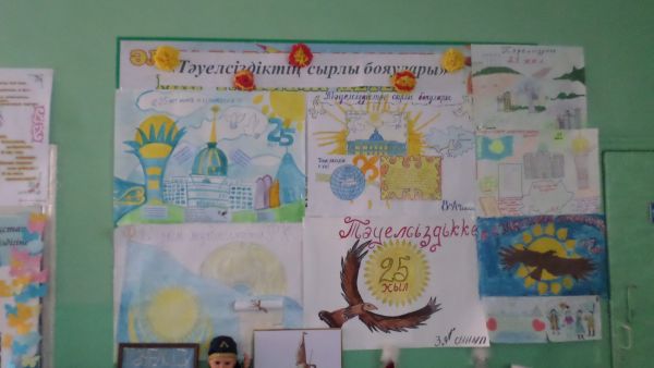 Учителя ОСШ № 56 Нурпеисова С.А., Сорока О.А., Лепетухина Т.С., Карсакина Г.В. связи с празднованием 25-летию Независимости РК организовали выставку и поздравляли всех.