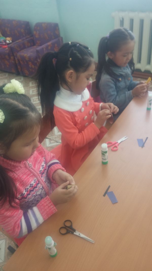 Жапсыру сабағында мектеп алды даярлық тобының оқушылары  түрлі-түсті қағаздардан тышқан жасады.