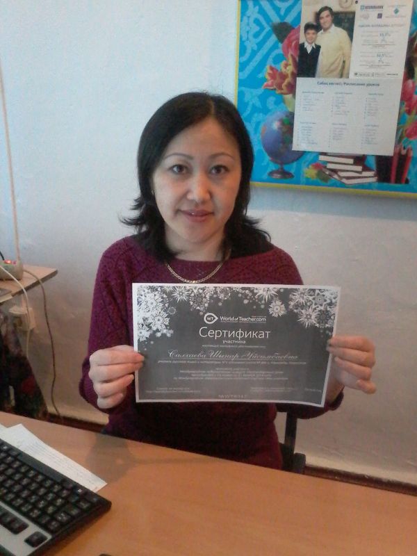 Учитель русского языка и литературы Салхаева Ш.У., получила сертификат за участие в Международном педагогическом конкурсе «Мое педагогическое кредо». Поздравляем!!!