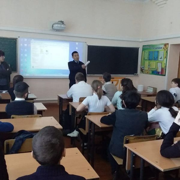 Сегодня,зональный инспектор Ахметжанов У.провел профилактическую беседу по правнонарушению с учащимися 6-7 классов.