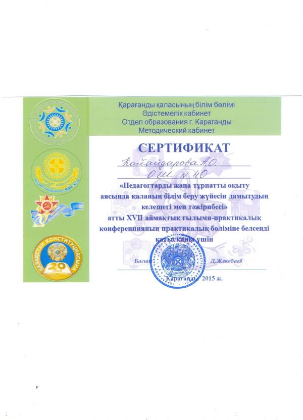 29.04.2015жылы №22 мектеп-интернатында «Мектеп және ардагерлер: 70 жылдық мерейтой» атты қалалық конференция өтті. Осы конференцияда №40  НМ қазақ тілі мұғалімі Мұқышева М.К. «…