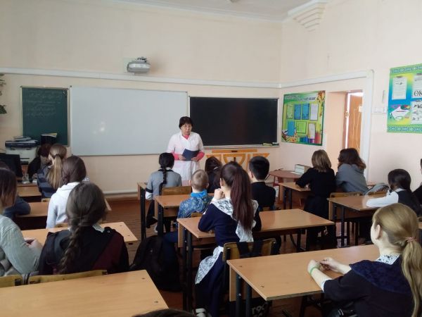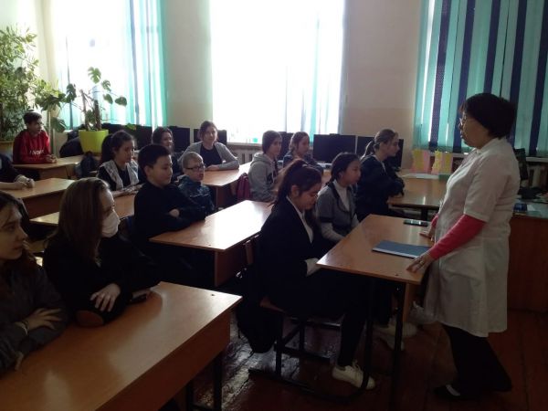 Коронавирустың алдын алу шаралары туралы 7-9 сынып оқушыларымен мектеп медбикесі К. Абильтаевна түсіндірме жұмысын жүргізді