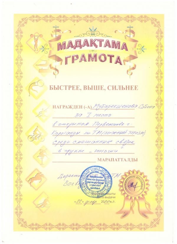 Учащиеся нашей школы участвовали в открытом Первенстве г. Караганды по туристскому многоборью (лыжный туризм) на дистанции "связка" , "в комплексном зачете"&nbs…