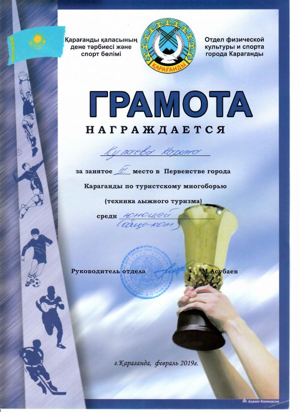 2-3 февраля дети приняли участия Первенстве города Караганды по туристкому многоборью(техника лыжного туризма). По итогам двух дней дети заняли 3-е место. Участники: Чернян Дмитрий, КУлаев Дмитрий,…