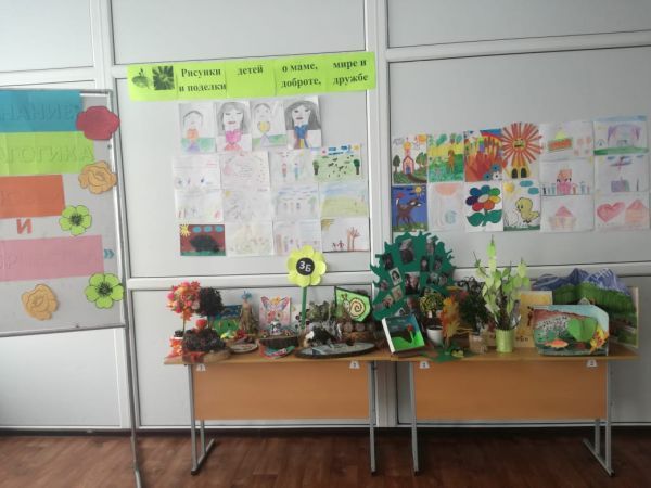 В рамках декады "Самопознание: педагогика Любви и Творчества" была организована выставка творческих работ детей: рисунки и поделки о маме, доброте, мире, дружбе.