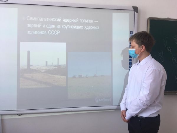 В школе были проведены классные часы на тему:"Закрытие Семипаоатниского полигона"