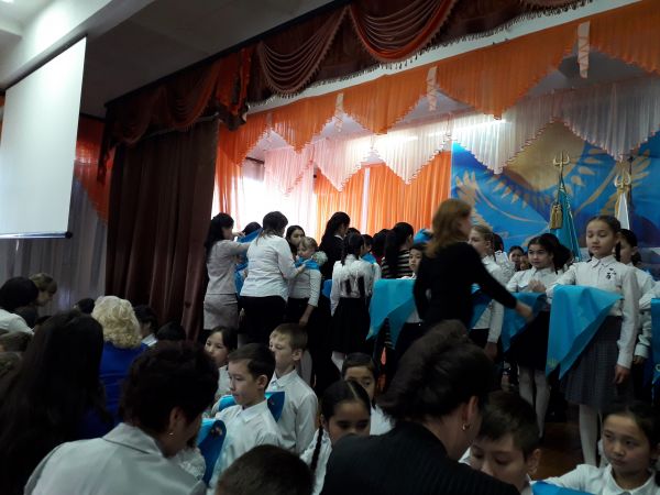 В предверии праздника дня Независимости Республики Казахстан в ряды детской юношеской организации "Жас Улан" были приняты ученики 5 класса