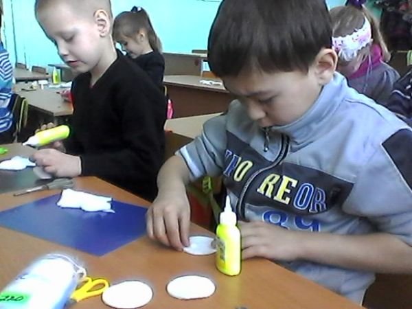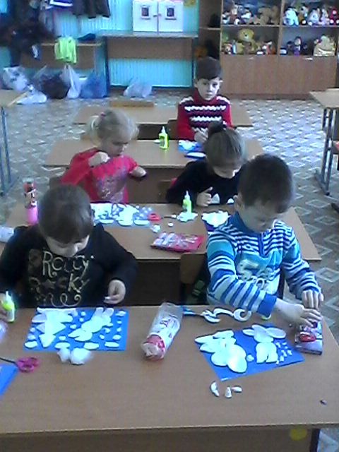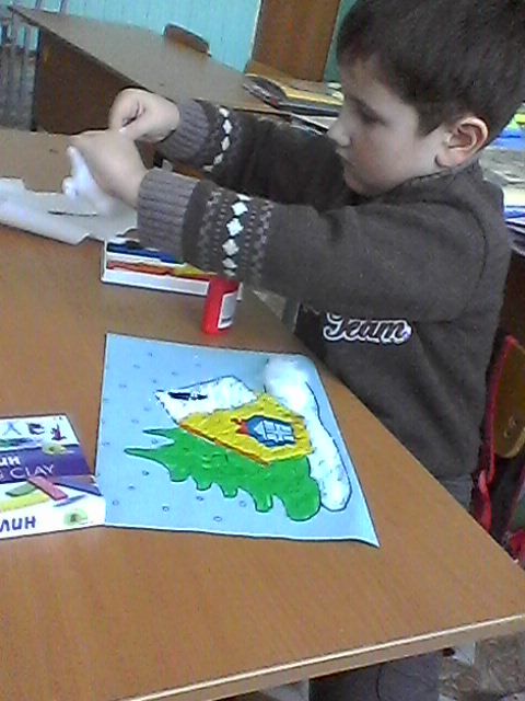 Цель: Учить детей творчески применять разные техники аппликации,с применением бросового материала (вата, яичная скорлупа, пластилин); развивать мелкую моторику рук.