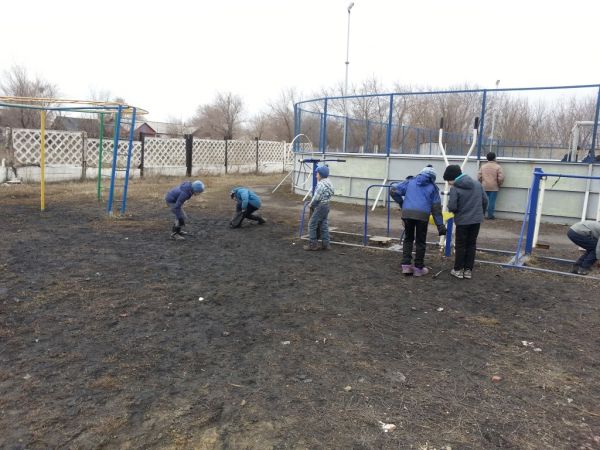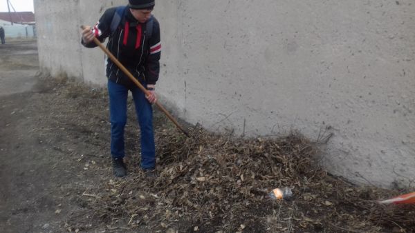 14.04 6 класс принял активное участие по уборке территории поселка.