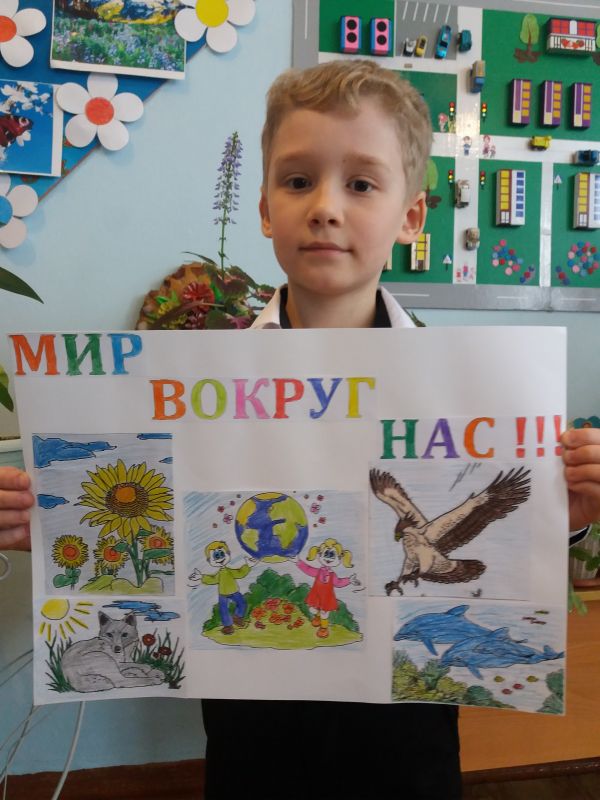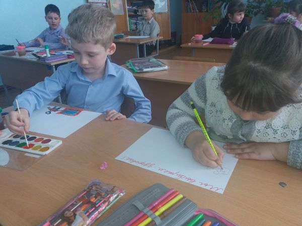 Ученики 2 "Б" класса на уроке литературное чтение создавали постер " Мир вокруг нас"