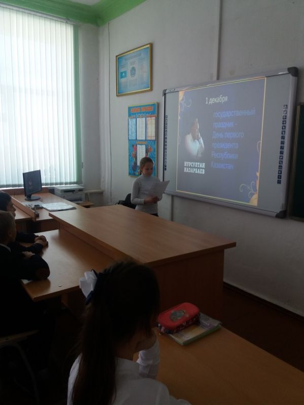 30 ноября в 8 классе прошел классный час на тему: "1 декабря - День Первого Президента РК". На классном часу был показан документальный фильм о Н.А. Назарбаеве и была проведена викторина,…