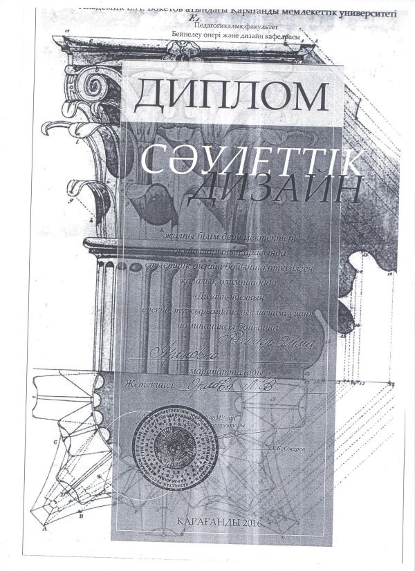 30 марта 2016 года на базе Карагандинского государственного университета Е. А. Букетова прошла олимпиада по дизайну. Участие в олимпиаде приняли наши ученики. Герцен Вилли, ученик 9 клас…