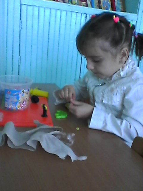Учить детей отщипывать небольшие кусочки пластилина и с…