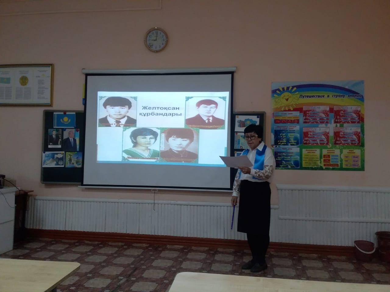 "Желтоқсан- Тәуелсіздік тұғырым!тақырыбында Жас мұғалімдер арасында іс-шара өткізілді.Желтоқсан ызғары. Қайрат Рысқұлбековтің ақтық сөзі. Көрініс