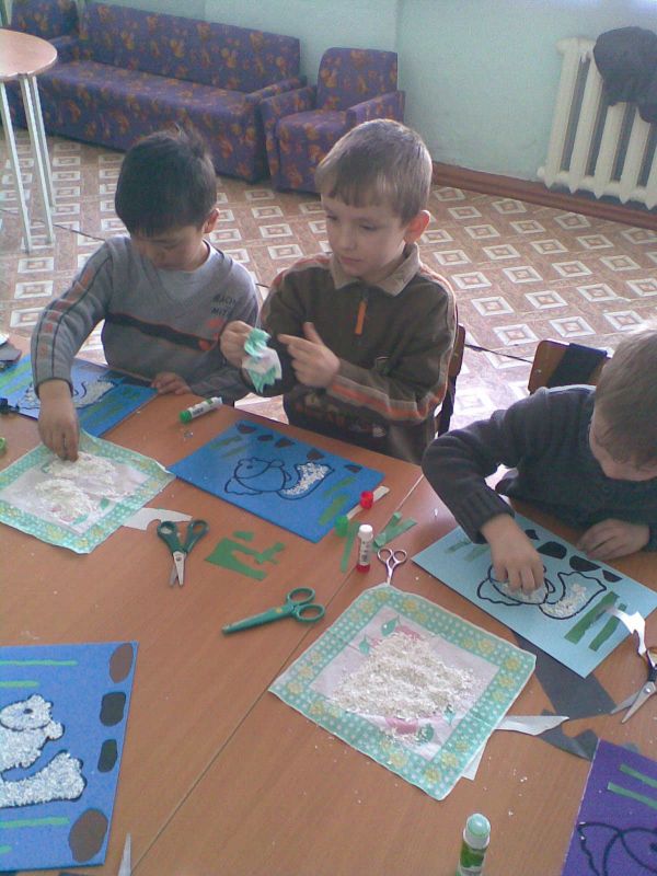 Закреплять умение работать с ножницами, с бумагой, различать и подбирать цвета; уметь работать в коллективе; развивать глазомер. Воспитывать терпение, усидчивость, аккуратногсть, внимание, эстетичес…