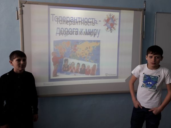В 7 классе прошел классный час на тему "Толерантность - дорога к миру"