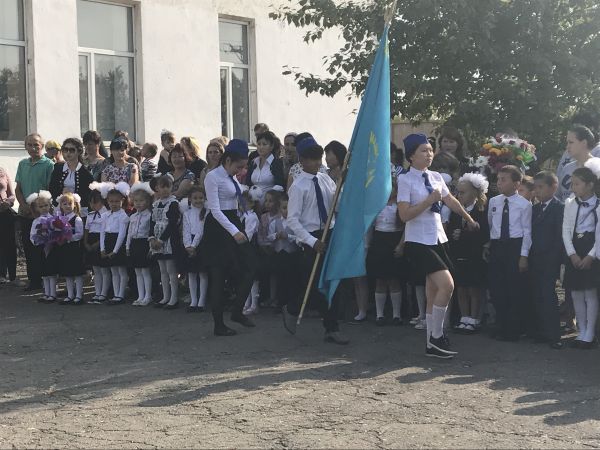 2- қыркүйек Білім күні ҚР Рәміздерінің 25 жылдығымен ҚР Конституция күніне арналған салтанатты саптық жиын өтті.