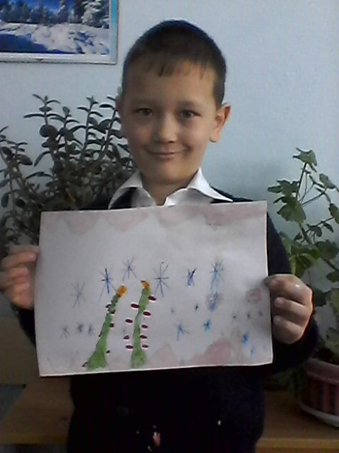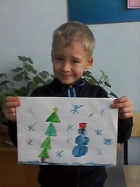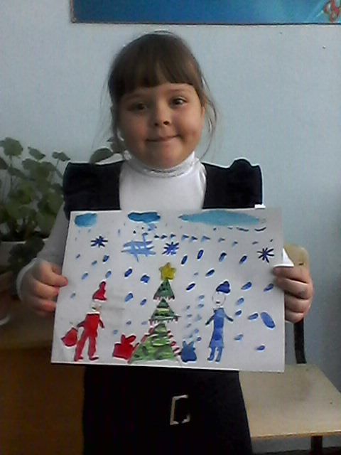 Ученики 1 «Б» класса подготовили свои работы к выставке рисунков по теме «Здравствуй, гостья Зима!»