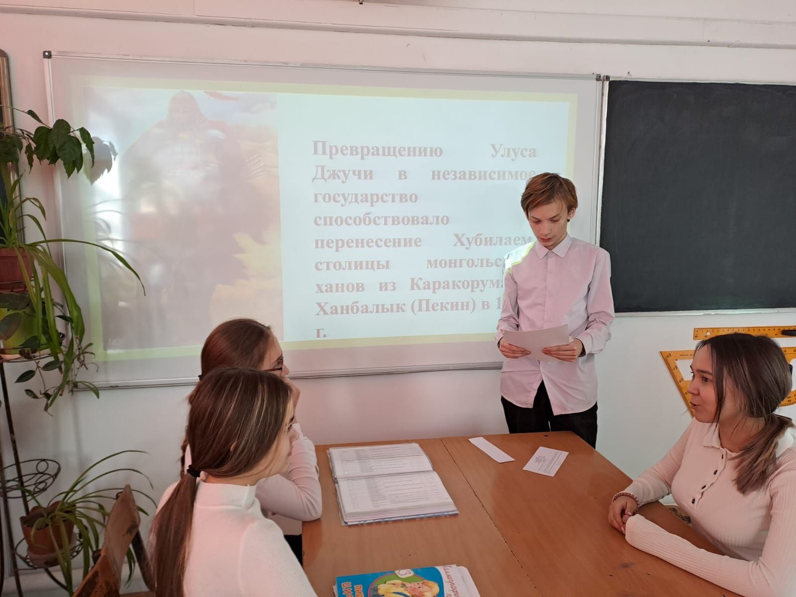 5 ақпан 9 А сыныбында «Жошы Ұлысының құрылғанына 800 жыл» тақырыбында дөңгелек үстел өтті.