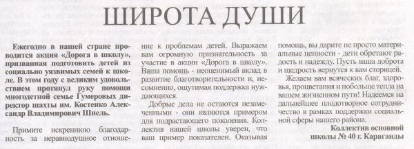 Примите искреннюю благодарность за неравнодушное отношение к проблемам детей. Выражаем вам огромную признательность за участие в акции «Дорога в школу». Ваша помощь - неоценимы…