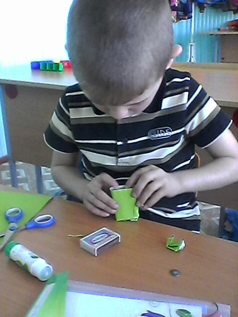 Цель: учить детей выполнять поделки из спичечных коробков; развивать воображение, внимание; воспитывать умение слушать и наблюдать.