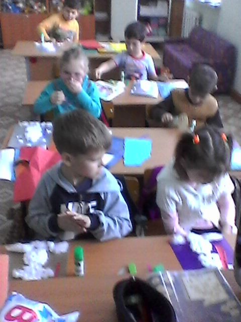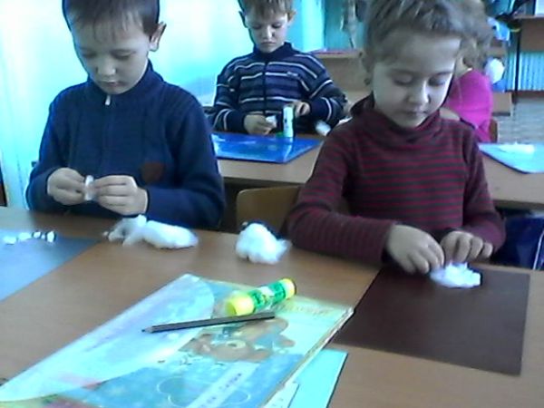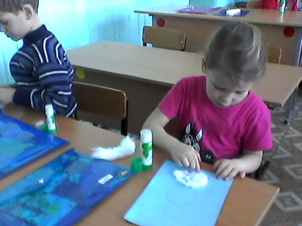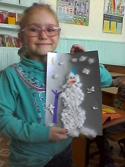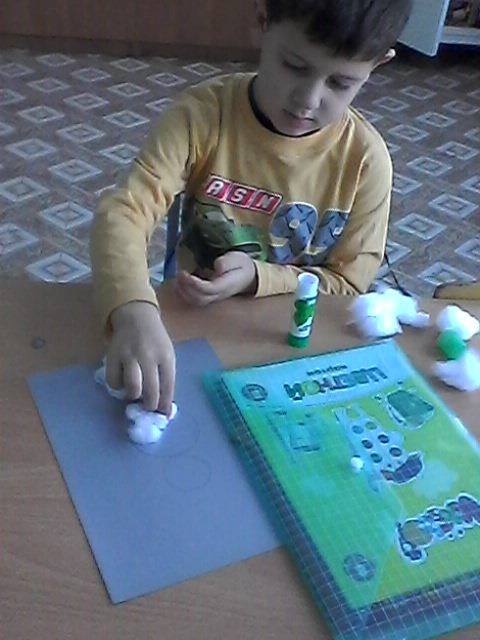 "Веселый снеговик" аппликация из ваты на бумаге (предшкола с русским языком обучения)