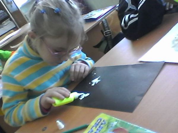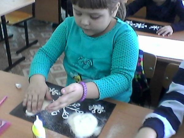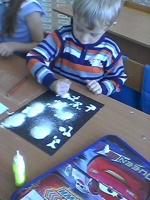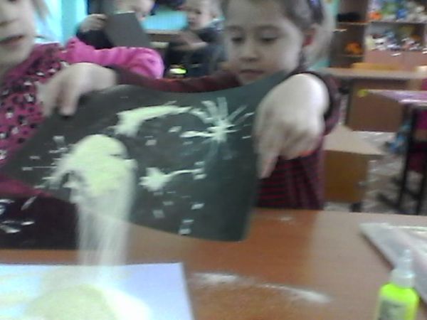 "Снежинки" рисование манной крупой (предшкола с русским языком обучения)