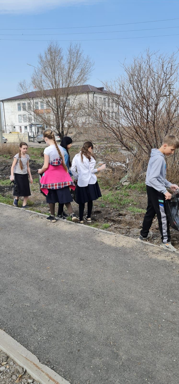 19 сәуір аудандық сенбілікте мектеп аумағын және қоршаулар бойын санитарлық тазалау жұмыстарына 5-8 сынып оқушылары шықты.