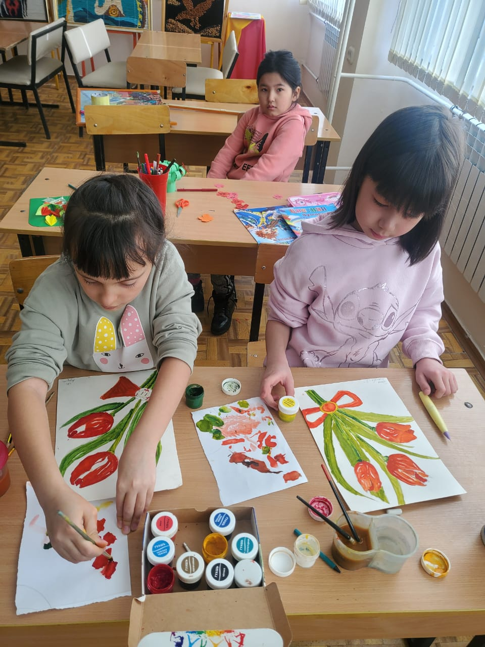 03.03.2025 ж. «Бейнелеу» үйірмесінің оқушыларының 8 Науырызға жұмыстары мен құттықтаулары.