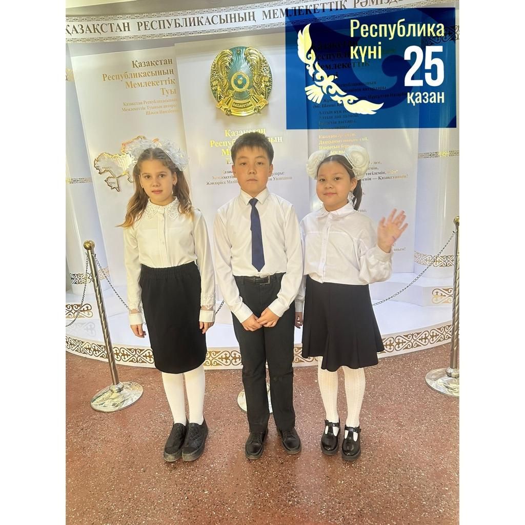 Қазақстан Республикасы күніне орай 3"В" сынып оқушылары Ж.Баталова, А.Перлова, С.Прокопова, А.Суханова, М.Воробьев Қазақстан Республикасы, Отан туралы өлеңдер оқыды.