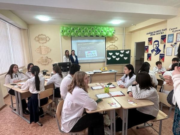 Қаржылық апталық аясында Қазақ тілі мен әдебиеті ұстаздары ағылшын тілі мұғалімдерімен кіріктірілген "Жасыл экономика", "Болашақ энергия көздері" атты 9"В" сыныбында аш…