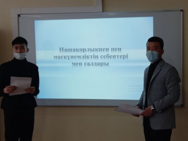 10"А" сыныбында "Нашақорлық пен маскүнемдіктің себептері мен салдары" тақырыбында тәрбие сағаты өтті.