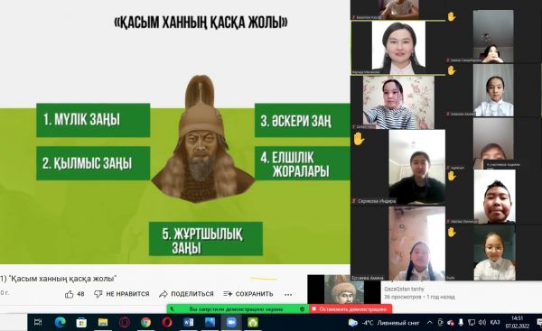 «ҚҰҚЫҚТЫҚ НАВИГАТОР» құқықтық сауттылықты арттыру апталығының аясында оқушылармен ZOOM платформасында «Қасым ханның қасқа жолы - қазақ халқының әдет ғұрыптық ережелері» атты…
