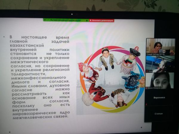 7А сыныбының "Рухани келісім - халық бірлігіне бастар жол" тақырыбында өткізілген сынып сағаты.
