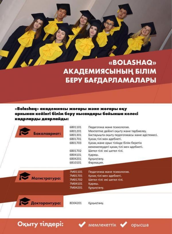 "Bolashaq" академиясы маусым айынан бастап "педагогикалық ғылымдар", "бизнес, басқару және құқық" және "денсаулық сақтау және әлеуметтік қамтамасыз ет…