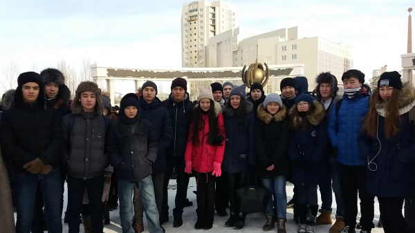№5 мектептің 9-10 оқушылары 15.02.2017 сағ. 11.00 Жеңіс саябағында Кеңес әскерлерінің Ауғаныстаннан шығарылғанына 28 жыл толуына байланысты салтанатты митингке қатысты